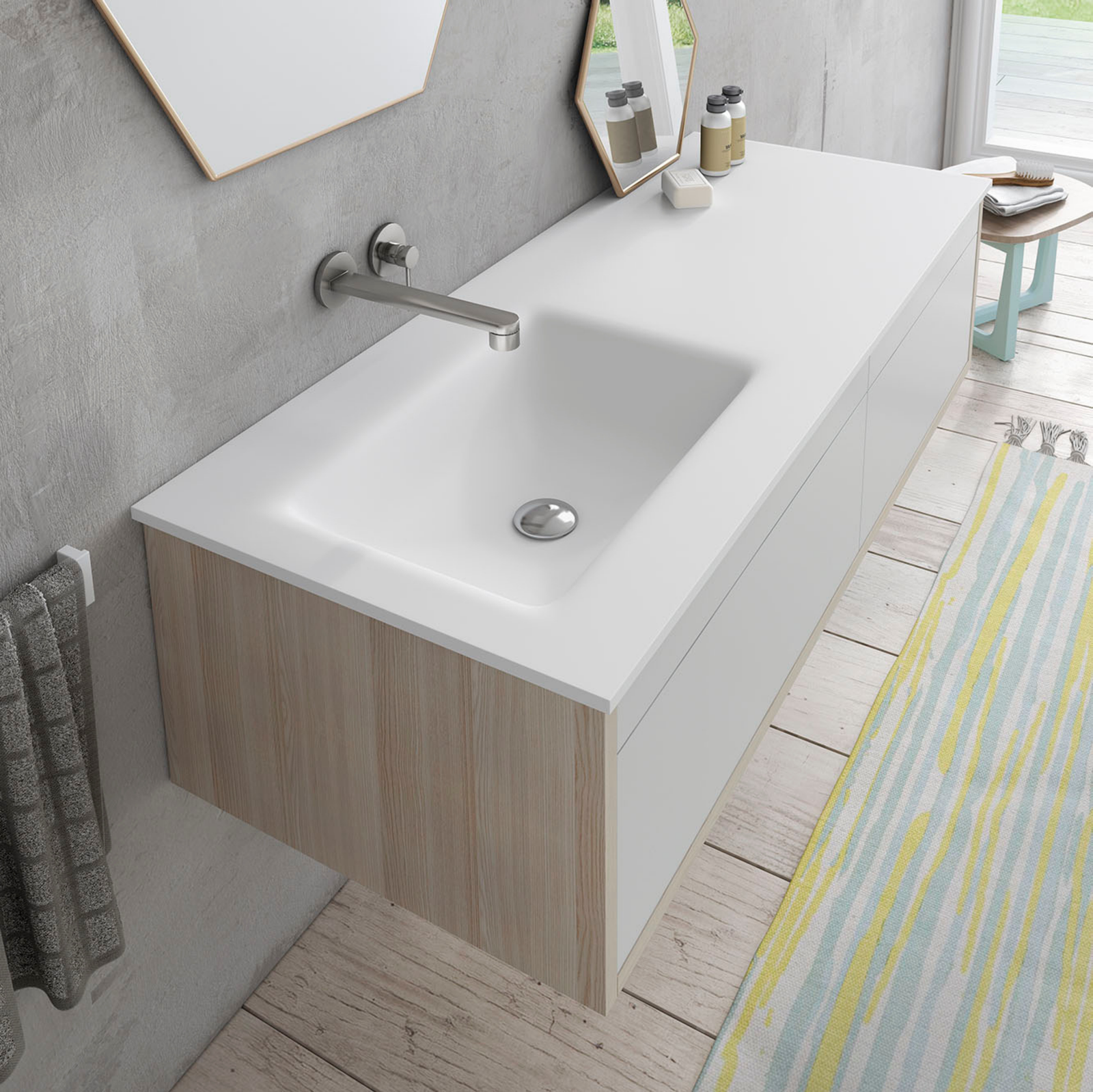 Perfecta para baños residenciales o contract, la encimera Italo se adapta a proyectos de interiorismo que buscan soluciones de alta gama con estética contemporánea. Es ideal para lavabos suspendidos o combinados con mobiliario de baño a medida. Gracias a su diseño ergonómico y su acabado impecable, ofrece una experiencia de uso cómoda y sofisticada en todo tipo de entornos.
