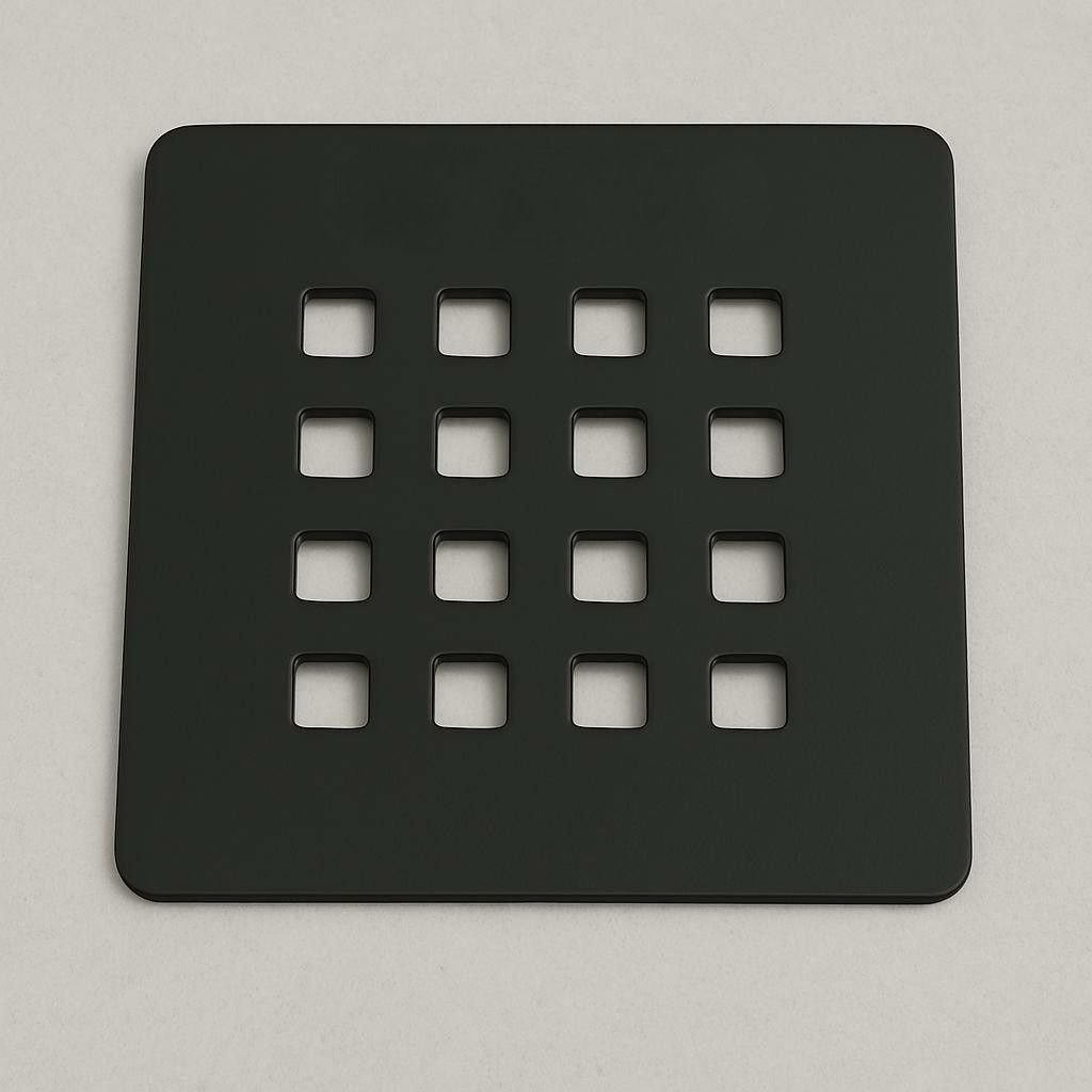 Rejilla para platos de ducha elegantes y resistentes en acabado negro para un drenaje óptimo.