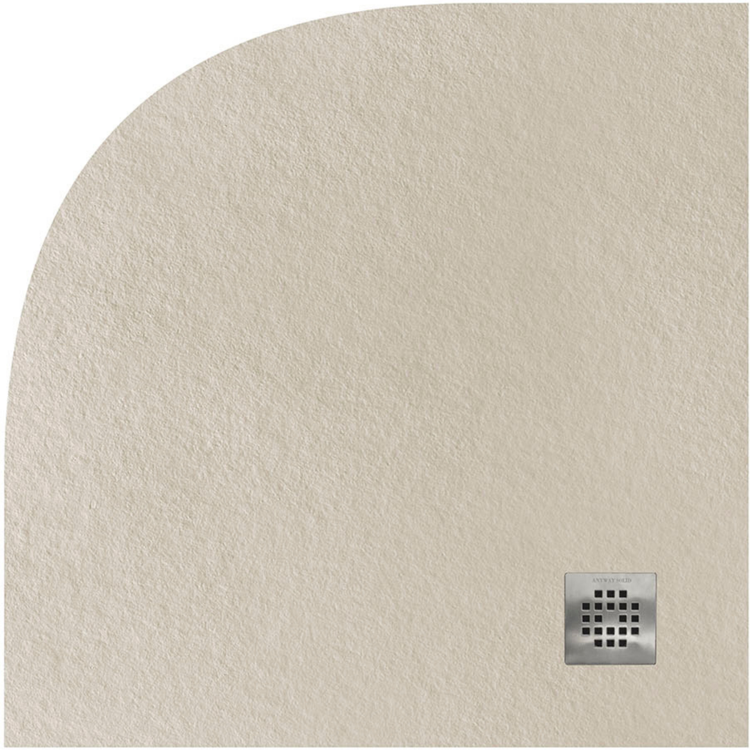 Fabricado en resina con carga mineral y recubierto con solid surface sanitario, este modelo ofrece una alta resistencia, propiedades antibacterianas y una superficie cálida y antideslizante. Su desagüe cuadrado metálico en la esquina potencia el carácter funcional del plato y garantiza una evacuación eficaz del agua.